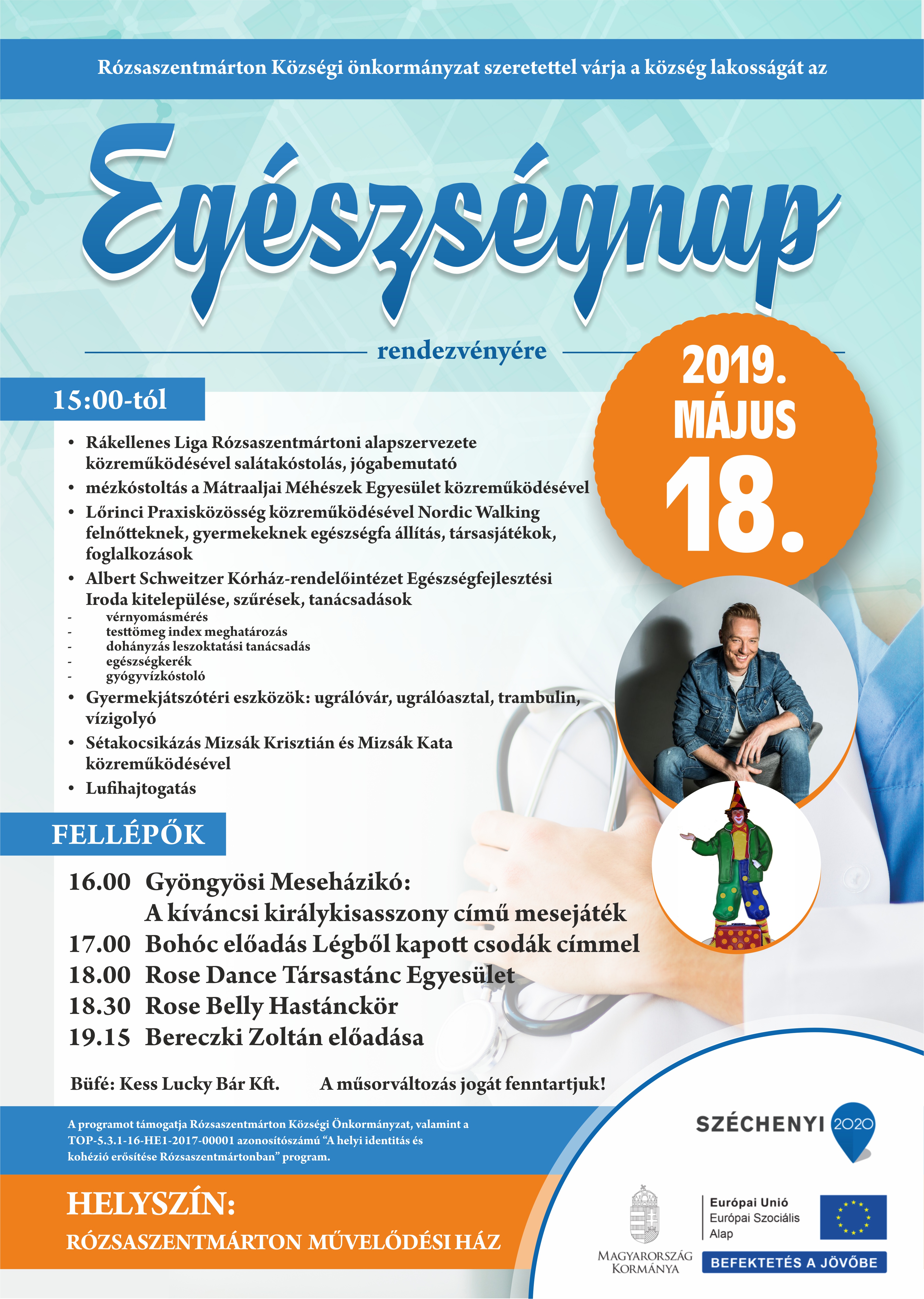 Az Egészségnap megtartására 2019. május 18-án a Művelődési Házban kerül sor.